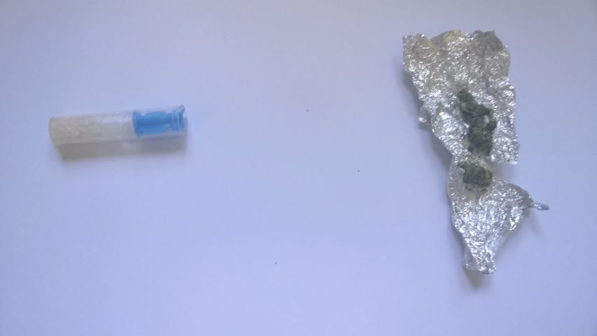 A rendőrök ellenőrizték a gépkocsit és a benne tartózkodókat. Átvizsgálták ruházatukat és a jobb első ülésen utazó férfi alsónadrágjából egy lezárt végű, bruttó 4.64 gramm kábítószergyanús kristályos anyagot tartalmazó fecskendőt, illetve egy alufóliába csomagolt, 1.14 gramm kábítószergyanús növényi származékot foglaltak le.