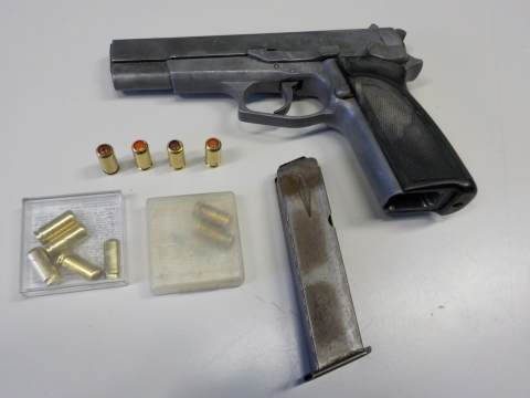 Az egyenruhások a megadott személyleírás alapján pár perc múlva Győr-Nádorváros egyik utcájában igazoltatták a középkorú férfit. Ruházatát átvizsgálták és kabátja zsebéből egy csőre töltött Browning típusú gáz-riasztó fegyvert foglaltak le. A pisztoly tárában három darab lőszer volt illetve táskájából további hét hasonló kaliberű töltény került elő.