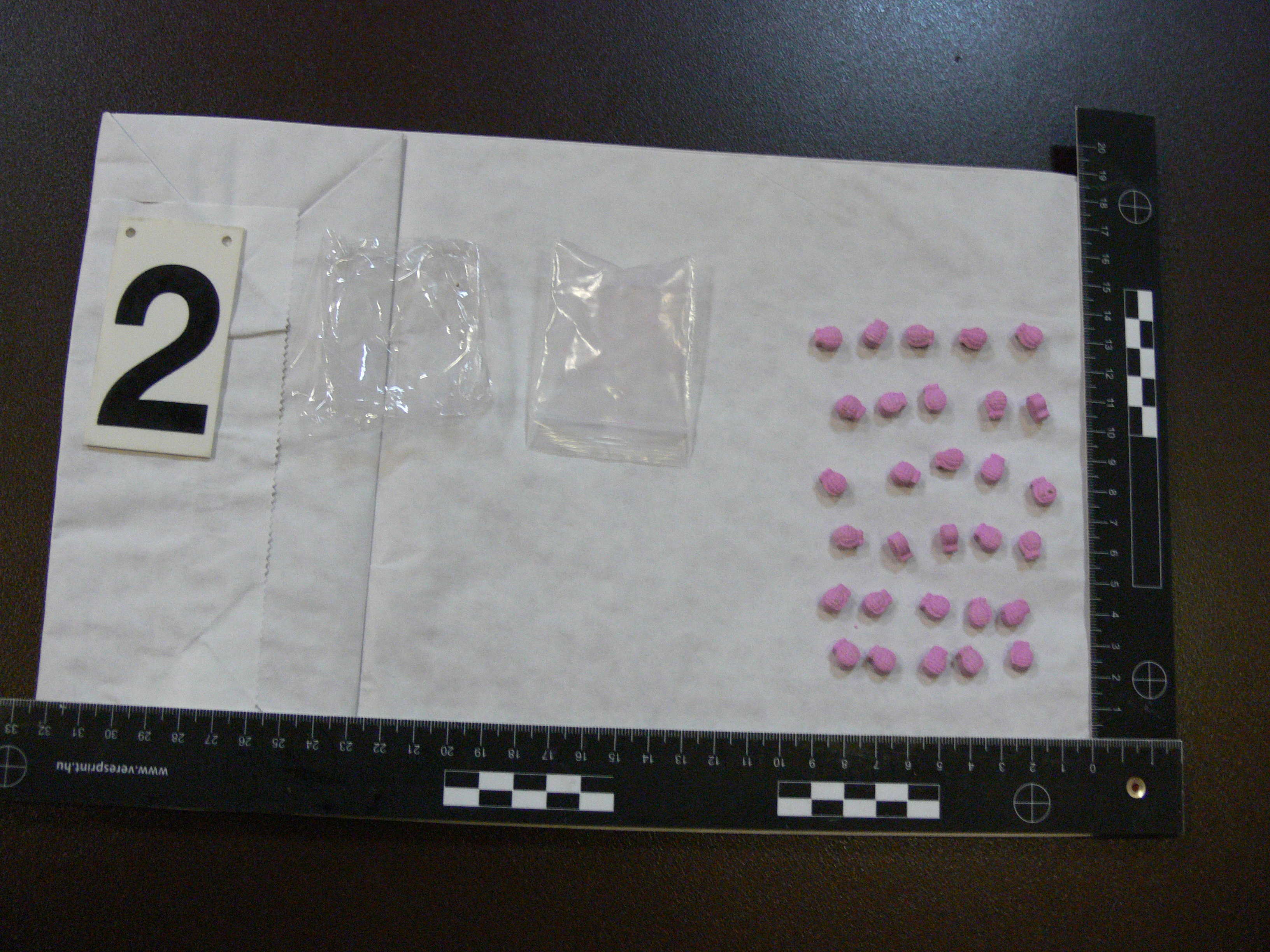 A Nógrád Megyei Rendőr-főkapitányság Bűnügyi Igazgatósága és a Salgótarjáni Rendőrkapitányság munkatársai 2016. január 29-én 16 óra 30 perckor Salgótarján belterületén ellenőriztek egy személygépkocsit, annak vezetőjét és két utasát. A ruházat átvizsgálás alkalmával a gépjármű 22 éves férfi utasának alsónadrágjából mintegy 10 gramm fehér színű anyag, valamint 30 darab rózsaszín, gránát alakú tabletta került elő, melyet a hatóság lefoglalt. A fehér színű anyag kábítószer teszttel történő vizsgálata amfetamin típusú kábítószer jelenlétét mutatta ki.