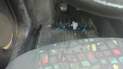 A felderítők az autót átvizsgálták, és a padlón szétszórva a bal első ülés elől 69 darab kék színű kábítószergyanús tablettát foglaltak le. A rendőrök K. Csaba nadrágzsebében a nevére kiállított hamis rendőrigazolványt is találtak.