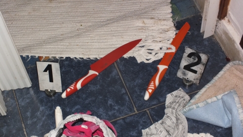 Rövid idő elteltével a gyanúsított személyesen ment el a nő házához, ahol a konyhaszekrény fiókjából két kést vett magához és azokkal a házban tartózkodó férfira támadt.