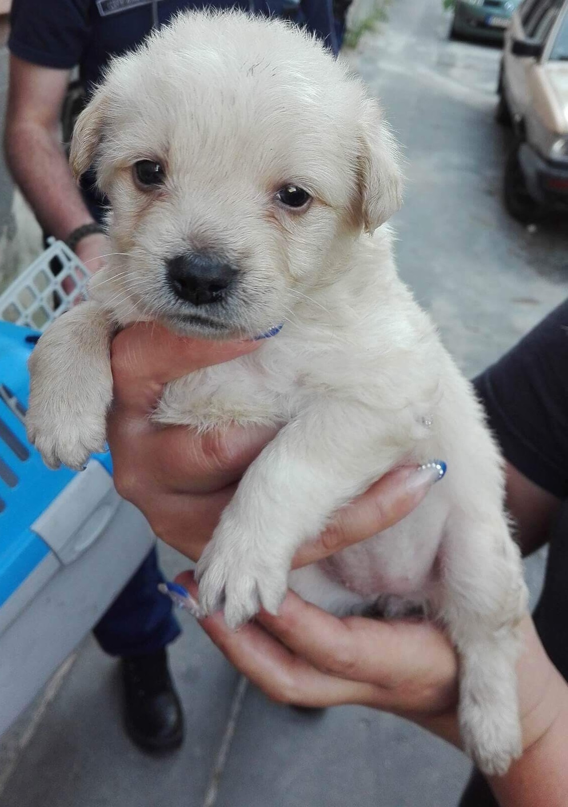 Amikor a járőrök kiérkeztek a címre, halk nyüszítést hallottak, ezért a bontásra ítélt ház oldalát tüzetesen átvizsgálták. Az egyenruhások megtalálták a három, pár hetes keverékkutyát, akiket valaki egy tejes ládába zárt víz és élelem nélkül.