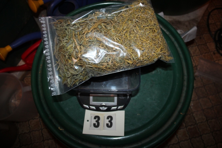 A bevezetett nyomozati cselekmények eredményeként a rendőrök megtalálták azt a lakást, ahol a férfi a kábítószert tárolta. A házkutatás során két kábítószer termesztéséhez kialakított fóliasátrat találtak a nyomozók, mellette pedig a már bezsákolt és „leszüretelt” növényt. A pincét a férfi kannabisz neveléséhez alakította át, a falakat lefóliázta, a növények fejlődéséhez pedig egy speciális öntözőrendszert épített ki. Az alagsori kertészetben a rendőrök kannabisz cserjéket is találtak. A nyomozók összesen 3341 gramm kábítószergyanús növényi törmeléket, 22 gramm növénymagot és 15 tő kannabisz növényt foglaltak le.