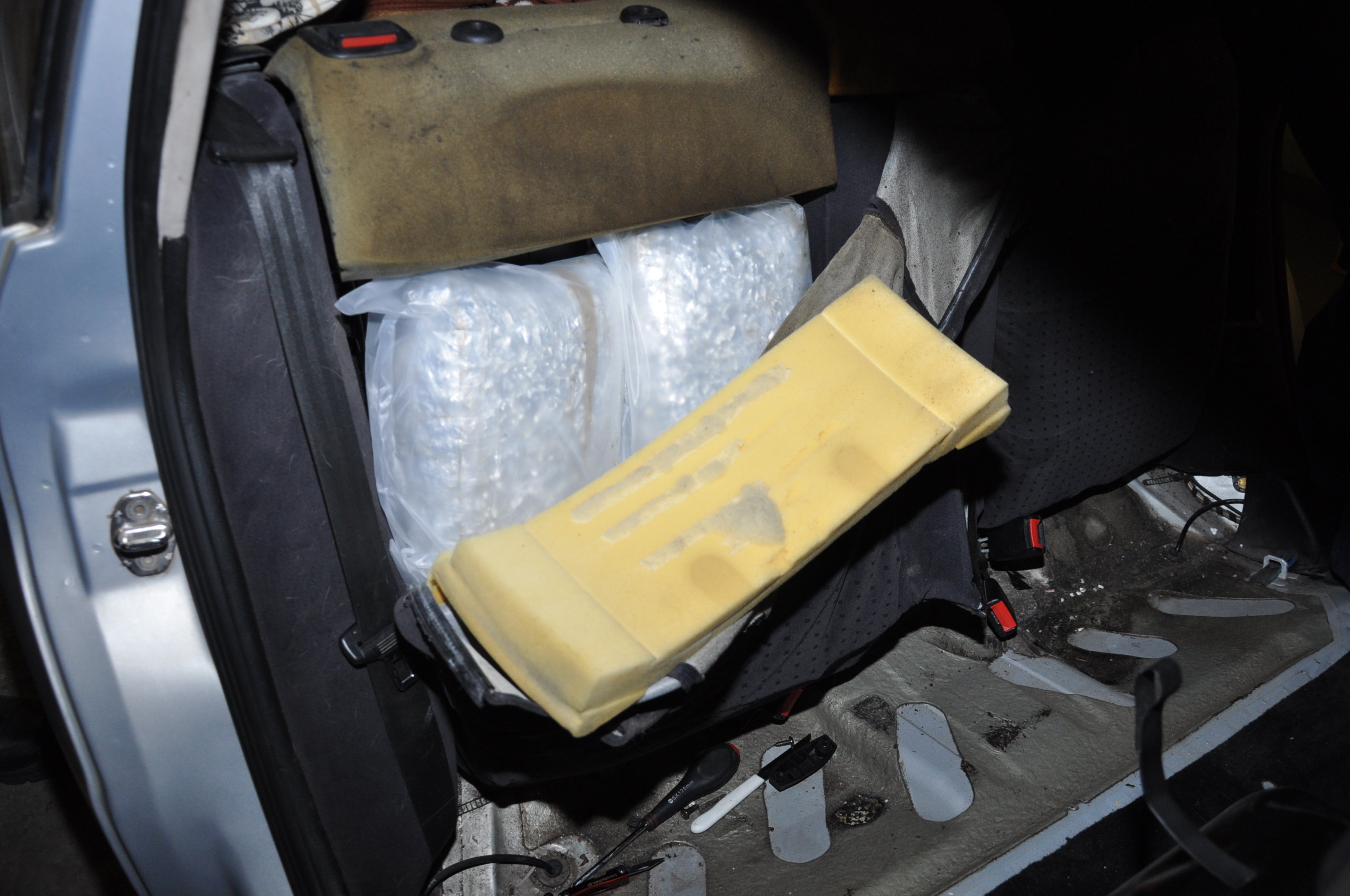 Ennek során a nyomozók a gépkocsiból - a hátsó ülésekbe, a pótkerék helyére, a lökhárító mögé, a csomagtér kárpitja alá, valamint a műszerfal mögé rejtve - 31 csomagban, összesen 27 kilogramm marihuána kábítószert találtak és foglaltak le.