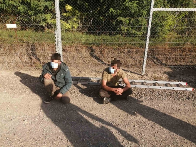 Jogellenesen próbált meg bejutni az országba két migráns Csongrád-Csanád megyében. A rendőrök feltartóztatták, majd az ideiglenes biztonsági határzárhoz kísérik őket.