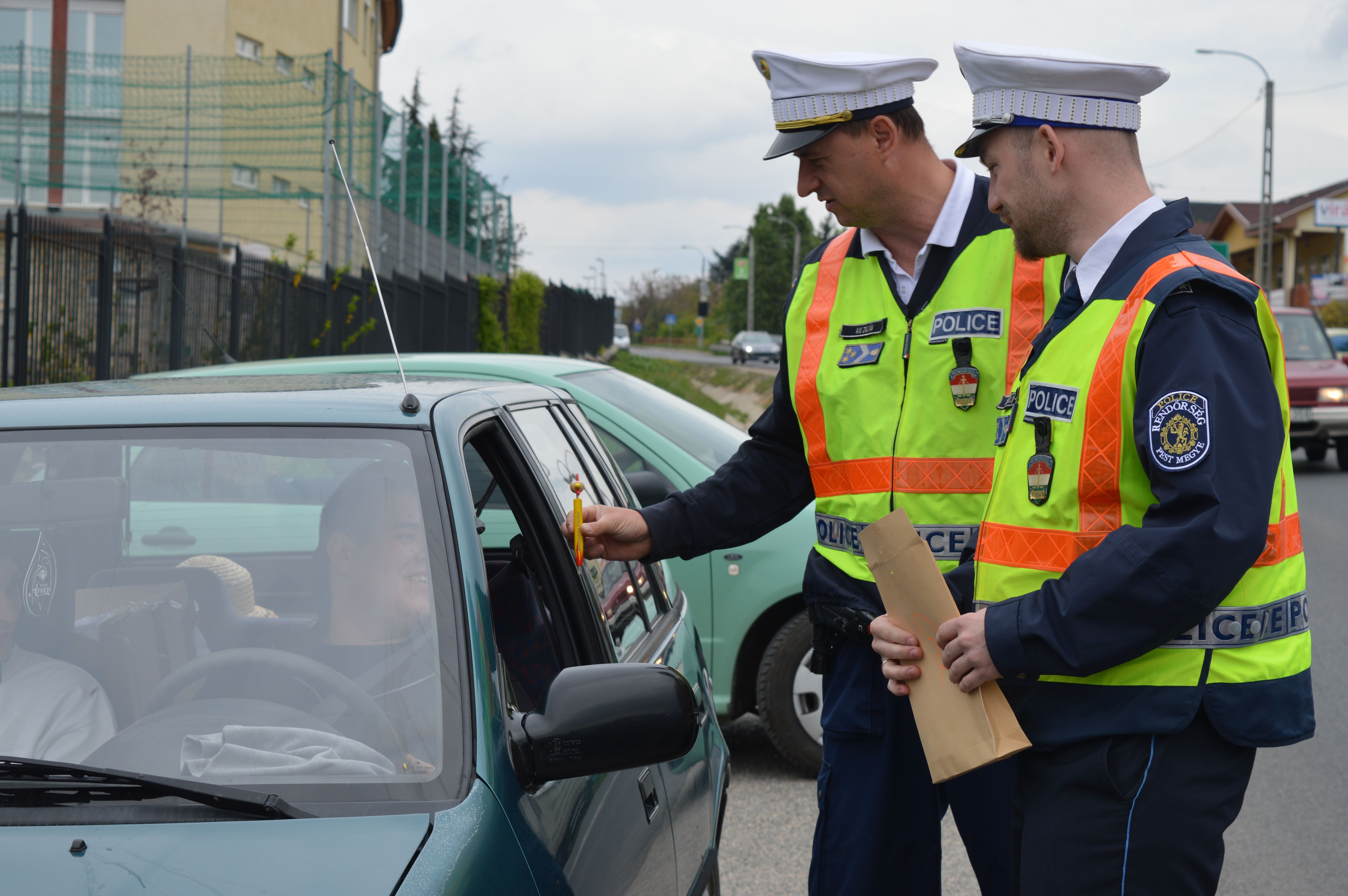 A közlekedési szabályok megszegése miatt 38 esetben tettek szabálysértési feljelentést. A szabályosan közlekedők apró ajándékot kaptak az ellenőrzést végző rendőröktől.