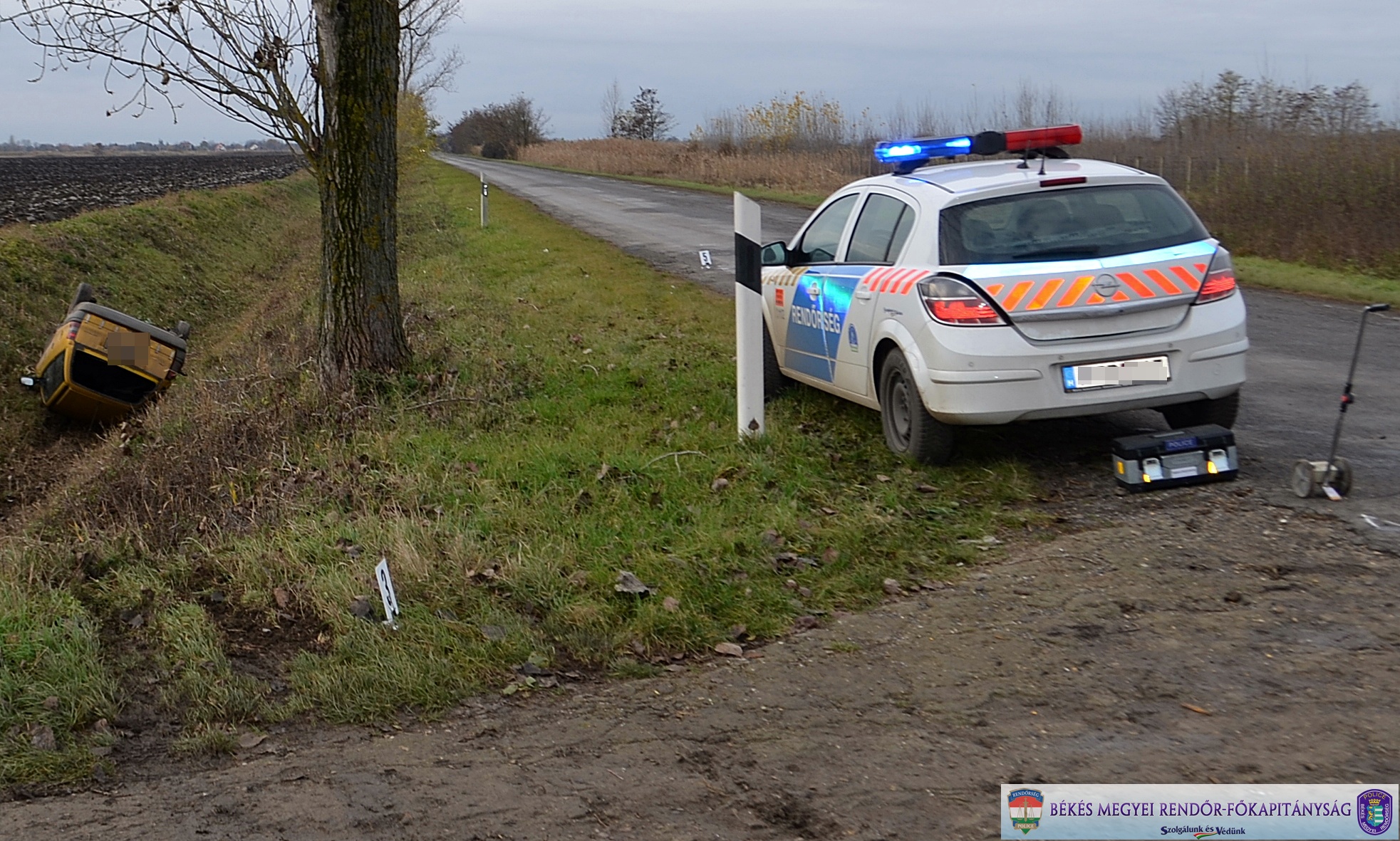 Kétegyháza külterületén 2014. november 20-án 2 óra 45 perc körüli időben egy személygépkocsi egy jobbra ívelő kanyarban letért az útról és árokba borult. A jármű vezetője, akinél felmerült a gyanúja annak, hogy ittasan vezetett, súlyosan megsérült. Az intézkedő rendőrök megállapították, hogy a békési férfinek nincs vezetői engedélye és nem a saját autójával közlekedett. Elekről, egy ház kapubejárójából a tulajdonos tudta és engedélye nélkül vitte el a személygépkocsit, amit összetört. Az autó tulajdonosa, miután leparkolt a járművel, az ablakokat felhúzta, de az ajtókat nem zárta be és az indítókulcsot is a gyújtáskapcsolóban hagyta. A Gyulai Rendőrkapitányság vizsgája a baleset körülményeit és az ügyben jármű önkényes elvétele bűntett gyanúja miatt is nyomozást indított.