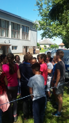 A diákok egy rögtönzött elfogást is láthattak, továbbá a nyomozók és a bűnügyi technikus munkáját is megismerhették, prevenciós tanácsokat is kaptak. A gyerekek érdeklődve kérdezték a rendőröket munkájukról. A szakemberek egy csapatépítő játékot is rögtönöztek a diákoknak, akik ügyesen vették az akadályt.