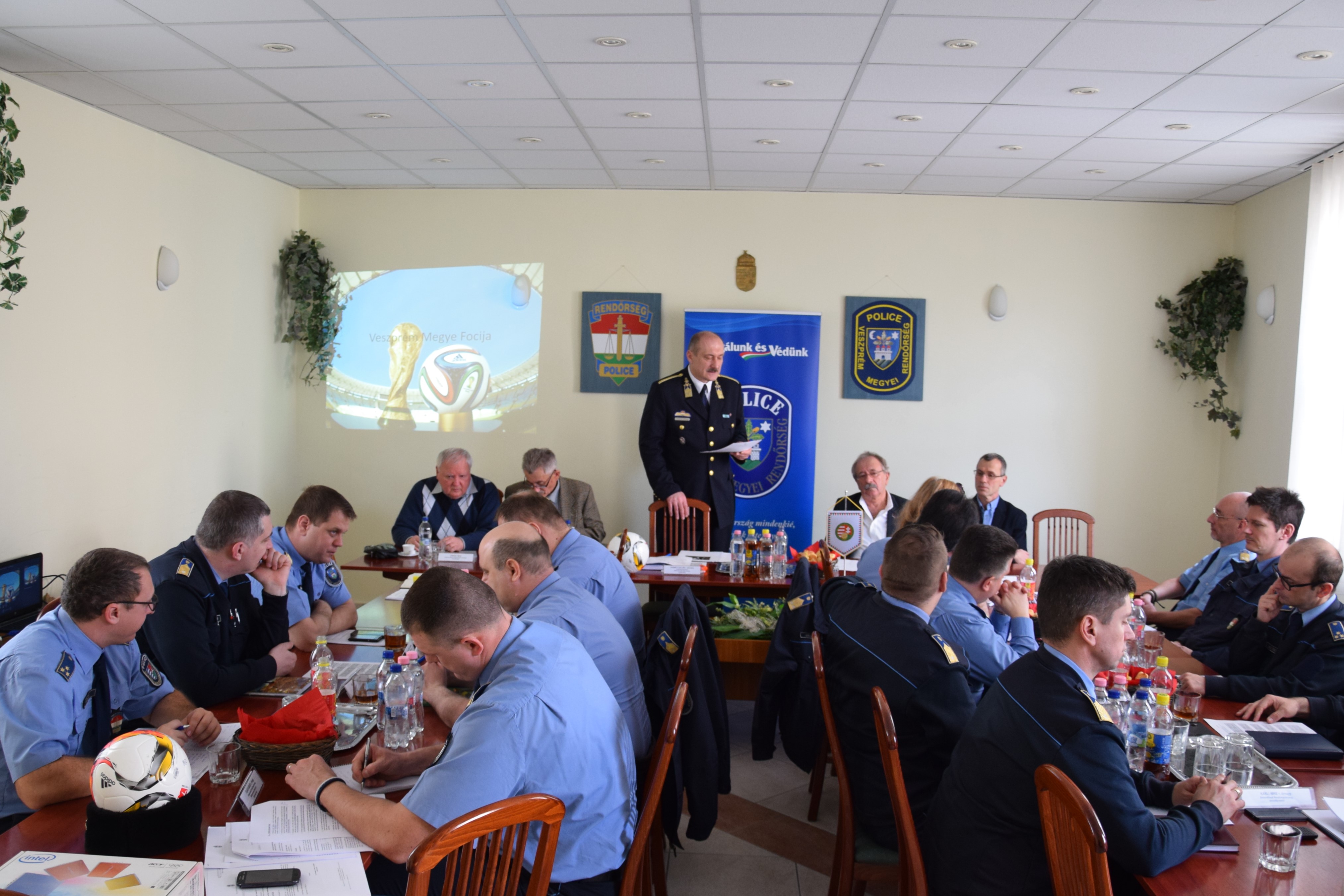 Borbély Zoltán rendőr alezredes, a Veszprém Megyei Rendőr-főkapitányság közrendvédelmi osztályvezetőjének köszöntője után Horváth Ernő, a Magyar Labdarúgó Szövegség Veszprém Megyei Igazgatóságának elnökségi tagja értékelte a szervezetek között végzett munkát. Ezt követően dr. Kovácsfi László, a Magyar Labdarúgó Szövetség Veszprém Megyei Igazgatóságának fellebbviteli bizottsági elnöke adott tájékoztatást a fegyelmi bizottság munkájáról. A Veszprém Megyei Polgárőrségek Szövetsége részéről Dülk József és Kórosi Tibor elnökhelyettesek kiemelték, hogy a mérkőzések zavartalan lebonyolítása érdekében fontos a rendőrséggel való közös szolgálat.