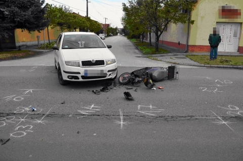 Kiskunfélegyházán 2017. április 21-én 5 óra 15 perc körül egy 45 éves helyi férfi egy Skoda Fabia típusú személyautóval a Horváth Zoltán utcában közlekedett. Haladása során a rendelkezésre álló adatok alapján a Horváth Zoltán utca és a Halasi út útkereszteződésében kihelyezett "Elsőbbségadás kötelező" jelzőtábla utasításainak ellenére nem biztosított elsőbbséget a balról - a Halasi úton a Szegedi út irányából - érkező 52 éves helyi nő által vezetett elektromos kerékpárnak, ezért összeütköztek. A nő a baleset következtében súlyosan megsérült.