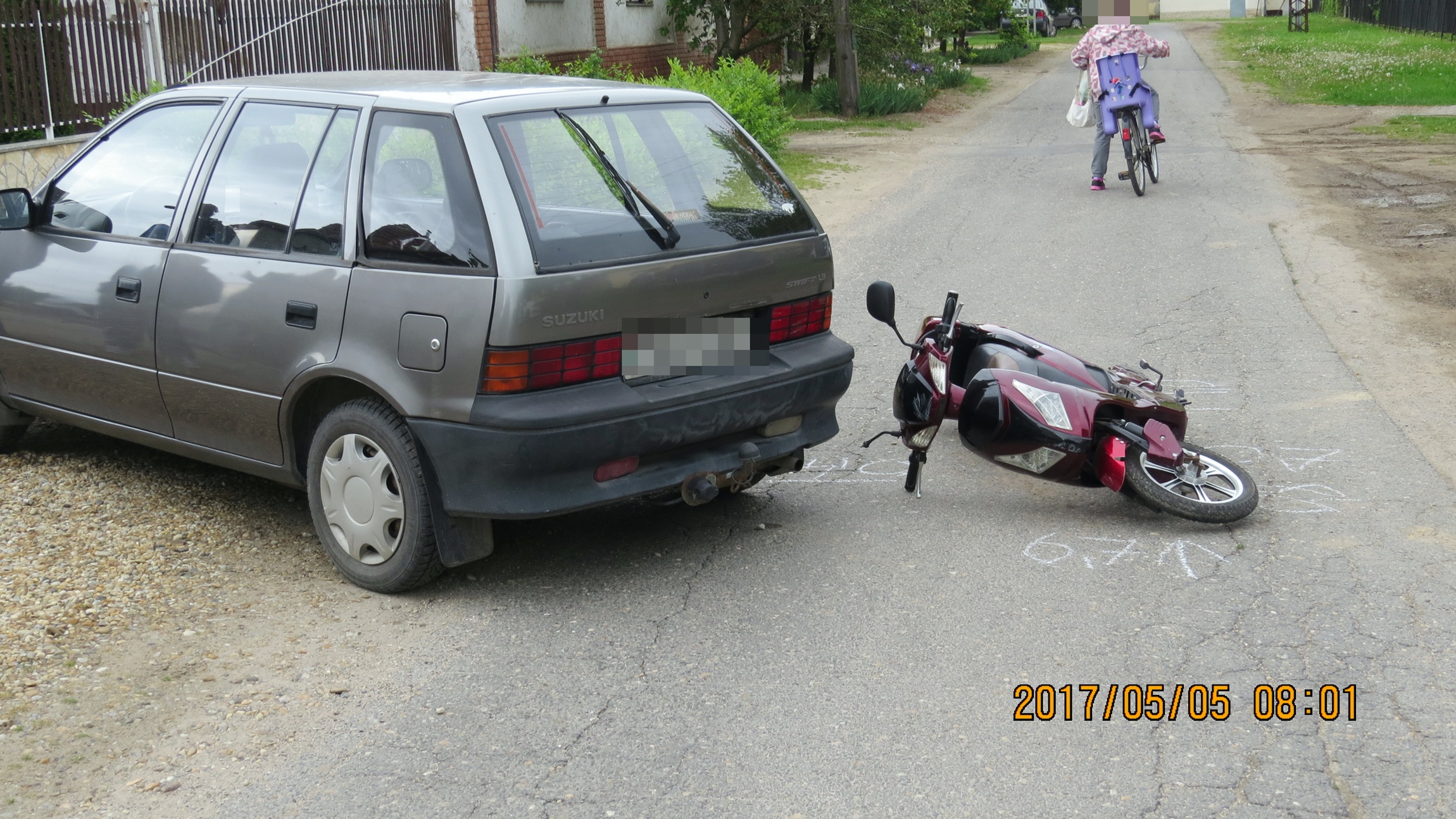 A rendelkezésre álló adatok alapján 2017. május 5-én 7 óra körül egy 30 éves nő egy Suzuki Swift típusú személygépkocsival Jánoshalmán, a Dr. Szobonya Zoltán utca egyik házának kapubejárójából úgy tolatott hátrafelé, hogy a rendelkezésre álló adatok alapján nem biztosított elsőbbséget a mögötte közlekedő 75 éves nő által vezetett elektromos kerékpárnak, ezért összeütköztek. A baleset következtében az elsődleges orvosi szakvélemény alapján a szépkorú nő súlyos, életveszélyes sérülést szenvedett.