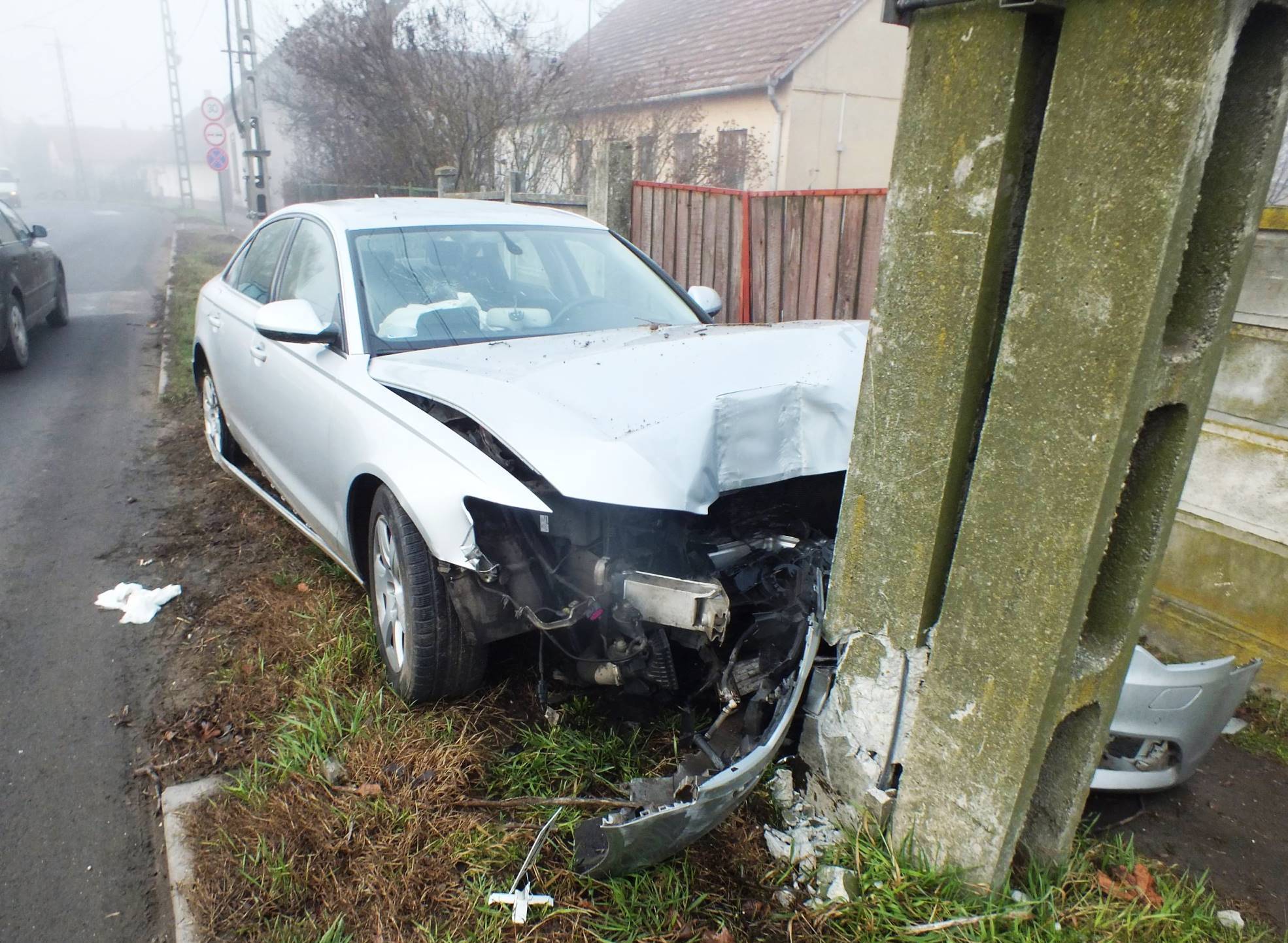 Egy 29 éves férfi közlekedett 2017. március 10-én 6 óra körül egy Audi típusú gépjárművel Mikepércsen, a Petőfi utcán Sáránd felől Debrecen irányába. A sofőr nem az útviszonyoknak megfelelően választotta meg a gépkocsi sebességét, ezért a jármű megcsúszott, majd a menet irány szerinti baloldalon egy villanyoszlopnak ütközött. A rendőrök a helyszínen alkohol szondát alkalmaztak a nyírbátori férfival szemben, amely pozitív eredményt mutatott. A gépjármű vezetője a baleset következtében könnyű sérüléseket szenvedett, mintavételéről a járőrök a férfi korházba szállítását követően gondoskodtak.