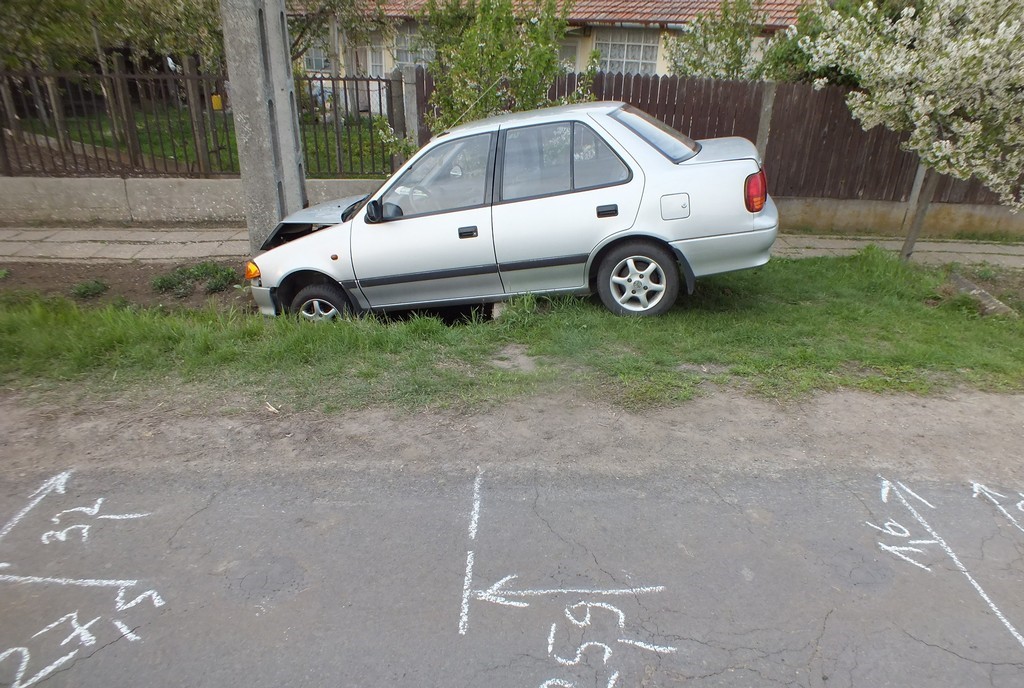 Egy család közlekedett autójával 2017. április 15-én 16 óra 15 perc körül Egyeken, a Hunyadi utcán a Tópart utca irányából a Bocskai utca felé. A járművezető a személygépkocsival eddig ismeretlen okból megcsúszott és az árokba hajtott, ahol előbb egy beton áteresznek, majd egy villanyoszlopnak ütközött. A baleset következtében az orvosi vélemény szerint a két utas 8 napon belül gyógyuló sérülést szenvedett, őket a mentőszolgálat munkatársai kórházba szállították.