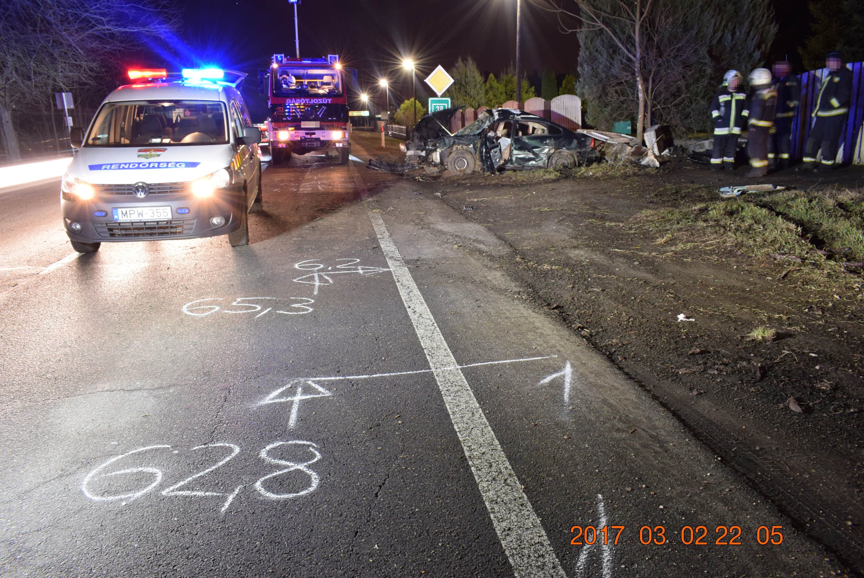 A 38-as számú főúton közlekedett Nyírtelek irányából Nyíregyháza felé 2017. március 2-án 20 óra 25 perc körül egy személygépkocsival közlekedő 28 éves nyírteleki nő, aki egy útkanyarulatban elvesztette uralmát a jármű irányítása felett, és lesodródott az útról, majd egy lakóház kerítésének ütközött. Az elsődleges adatok szerint a baleset bekövetkezésében szerepet játszhatott, hogy a sofőr nem az út- és látási viszonyoknak megfelelő sebességgel közlekedett. A gépkocsi vezetője súlyos sérüléseket szenvedett.