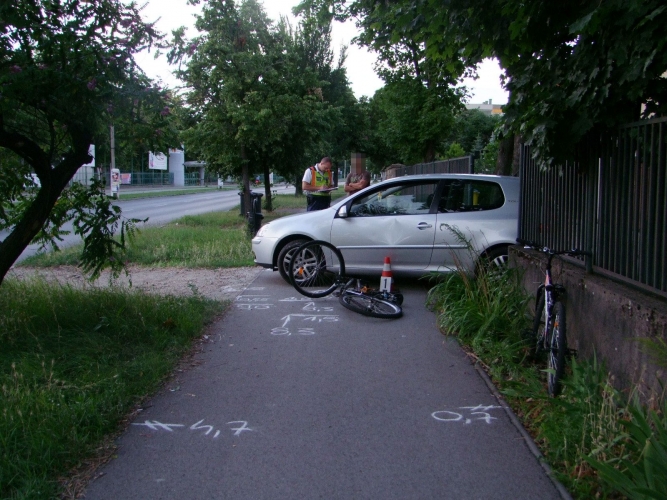 Nyíregyháza Sóstói útra akart kihajtani egy ingatlanról 2017. július 2-án 19 óra 25 perc körül személygépkocsival egy 46 éves helyi férfi. Haladása során a kerítés vonalán áthaladva összeütközött egy járdán, neki balról közlekedő kerékpárossal. Az ütközés következtében a biciklivel közlekedő 38 éves nyíregyházi nő könnyű sérüléseket szenvedett. A baleset körülményeit a Nyíregyházi Rendőrkapitányság vizsgálja.