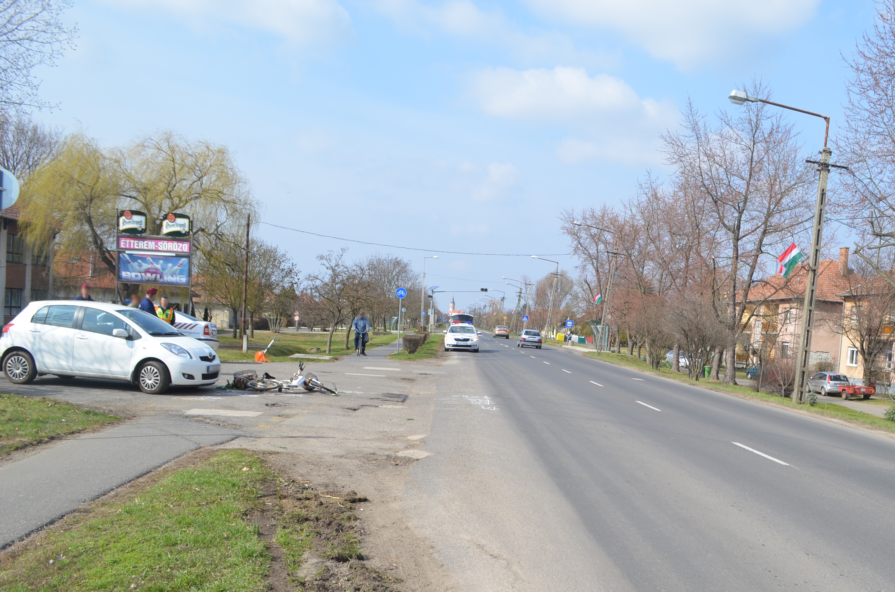 Gyomaendrődön, a Fő úton 8 óra 40 perckor egy kapubejáróból kikanyarodó személyautó kerékpárossal ütközött. A biciklis nő elesett és könnyebben megsérült.