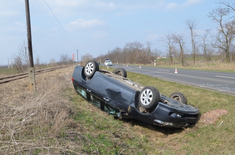 Orosháza külterületén 11 óra előtt néhány perccel egy személyautó letért az útról, árokba hajtott és felborult. A jármű vezetőjét könnyű sérülésekkel vitték kórházba a mentők.