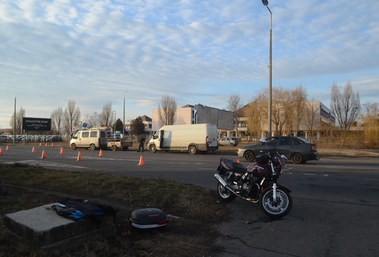 Egy motorkerékpáros közlekedett Szolnok belterületén 2017. február 23-án 14 óra 30 perc körül, amikor egy egyenrangú útkereszteződésben összeütközött egy személygépkocsival. A motoros a baleset következtében sérülést szenvedett.