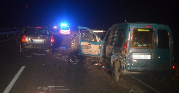 Egy Szolnok irányából Szajol irányába haladó személygépkocsi vezetője későn észlelte az úttesten gyalogosan tartózkodó személyeket és az egyik - eddigi információk szerint - kivilágítatlan gépkocsit, amelynek nekiütközött. A balesetben a két gyalogos sérült meg, az elsődleges orvosi vélemény szerint egyikük súlyos, míg társa könnyű sérülést szenvedett.