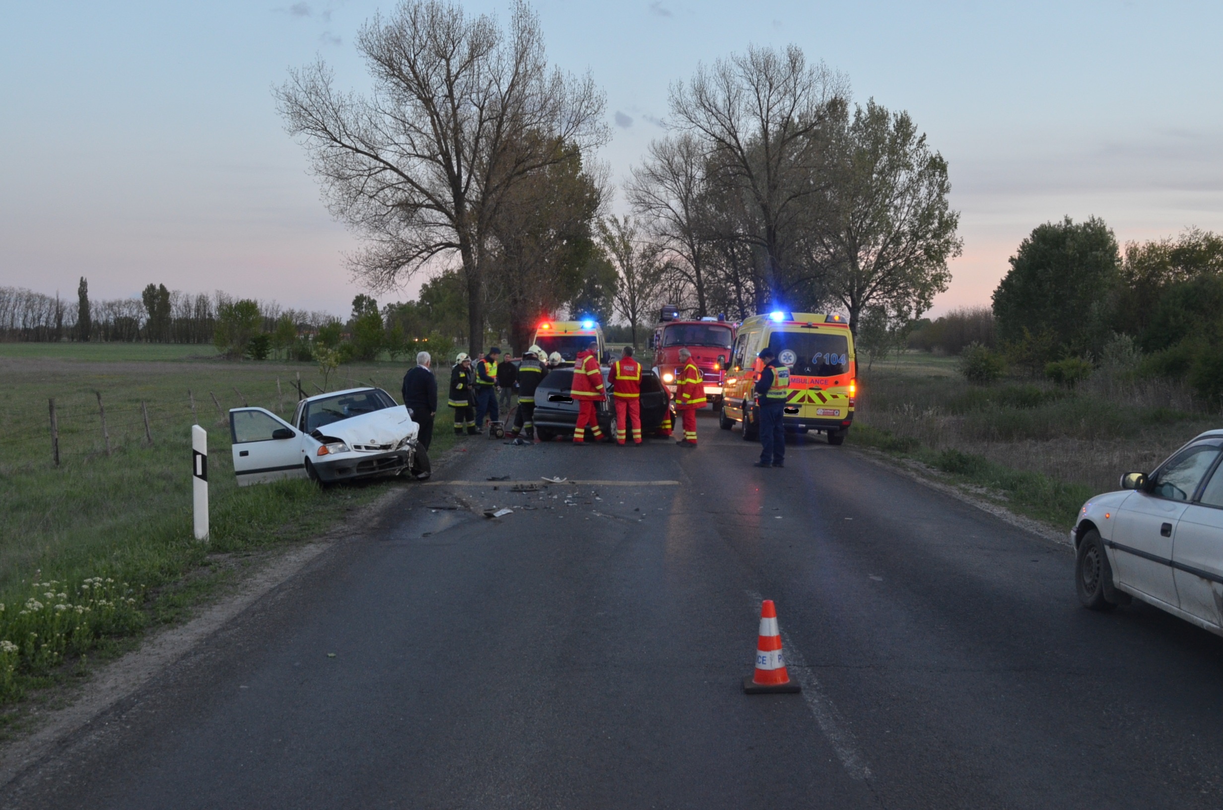 Nagykőrös külterületén, a 441-es számú út 11-es kilométerszelvényében 2017. április 23-án 19 óra 20 perckor egy személyautó eddig tisztázatlan okból lehajtott az úttestről és egy jelzőtáblának ütközött. Ezután az autó sodródni kezdett az úttesten, majd összeütközött egy vele szemben szabályosan közlekedő járművel. A baleset következtében egy személy megsérült.
