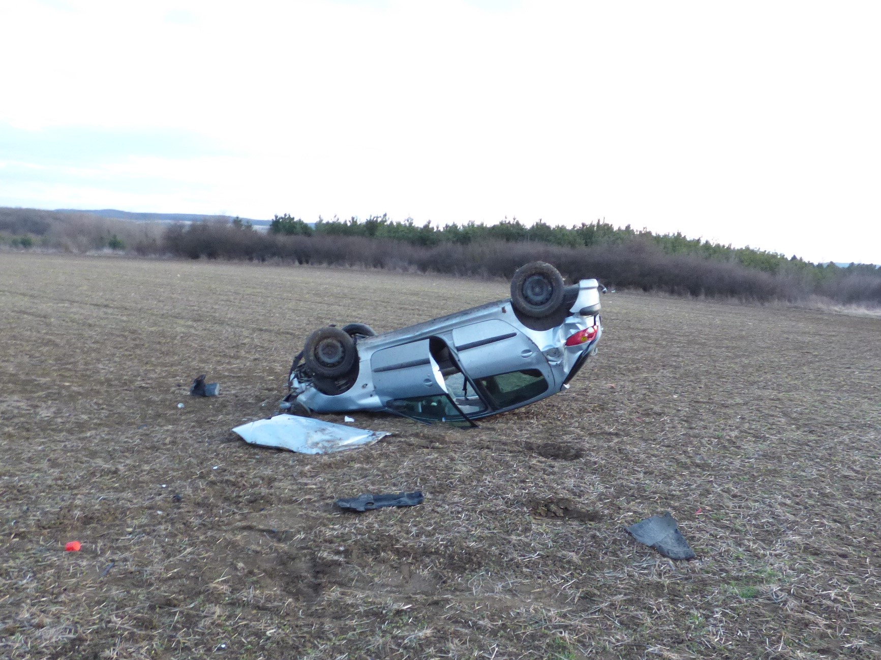 Egy nő közlekedett az általa vezetett személygépkocsival 2017. március 11-én délután a 77-es számú úton. Haladása során az előtte azonos irányban és azonos forgalmi sávban közlekedő tehergépkocsi előzésébe kezdett. Az előzés során a személygépkocsi összeütközött egy mellette közlekedő, az előzést már megkezdő személygépkocsi oldalának. Az ütközés hatására a nő elvesztette uralmát a járműve felett, majd a menetirány szerinti bal oldalon, az úttestet elhagyva a vízelvezető árok falának ütközött, és a tengelye körül átfordulva a tetején állt meg. A baleset következtében személyi sérülés nem történt.