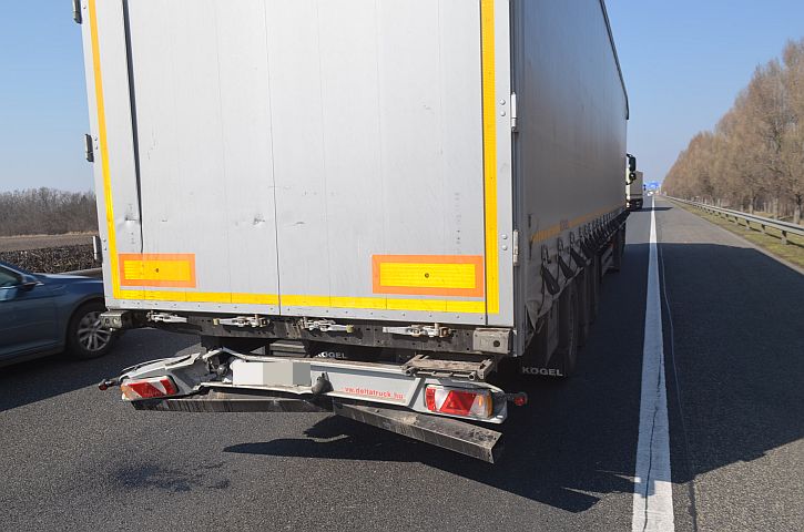 A rendelkezésre álló adatok alapján 2017. március 13-án 10 óra 35 perckor közlekedett az M1-es autópályán - Budapest irányából Hegyeshalom irányába - egy német forgalmi rendszámú Mercedes tehergépjármű vezetője, a külső forgalmi sávban. Közlekedése során a 127+775. kilométerszelvényben nem tartott megfelelő követési távolságot az előtte forgalmi okból fékező magyar forgalmi rendszámú Mercedes tehergépkocsi mögött, ezért a járműve elejével a másik jármű hátuljának ütközött. Az ütközés erejétől a tehergépkocsi az előtte szintén forgalmi okból lassító magyar forgalmi rendszámú nyerges vontatóból és a hozzá kapcsolt félpótkocsiból álló járműszerelvény hátuljának csapódott. A baleset során személyi sérülés nem történt.