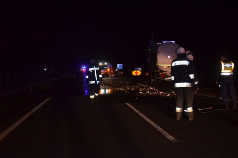 Az M1-es autópálya Hegyeshalom felé vezető oldalán, a 107. kilométerszelvényben közlekedett 2017. május 8-án a hajnali órákban egy autóbusz vezetője. Haladása során az előtte szabálytalan módon, a forgalomtól elzárt területen megálló tartálykamion bal hátsó részének ütközött. Az ütközés következtében a buszon utazó 40 utasból két személy, valamint egy sofőr sérült meg, őket a mentők kórházba vitték. A járművek járóképesek maradtak, azonban a tartálykamionból etilalkohol szivárgott. A műszaki mentés idejére az érintett útszakaszon teljes pályazár volt érvényben. A baleset körülményeit a rendőrség vizsgálja.