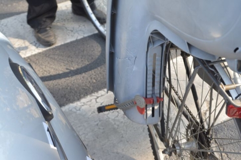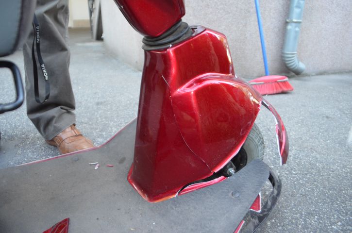 Ugyanezen a napon egy személyautó vezetője közlekedett 14 óra körüli időben Győrben a Lepke utcában, a Jereváni út irányába. Közlekedése során a Virág utca kereszteződéséhez érve balra kanyarodott, azonban ekkor nekiütközött egy úttesten szabályosan várakozó elektromos mopednek. Az érintettek adatot cseréltek, majd elhagyták a helyszínt. Az elektromos jármű vezetője otthonában erősödő fájdalmakat tapasztalt, ezért mentőt hívott. Az elsődleges megállapítások szerint súlyos sérüléseket szenvedett a balesetben.