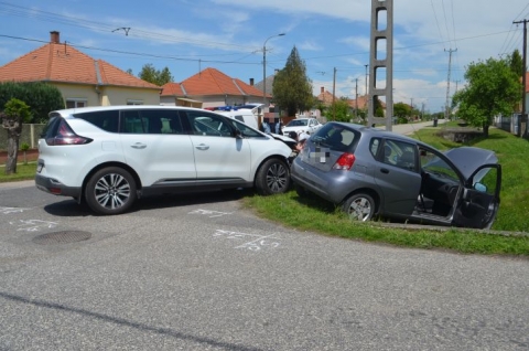 Ugyanezen a napon egy személygépkocsi vezetője közlekedett 12 óra 10 perc körüli időben Tét belterületén, az Alkotmány utcában. Haladása során a Hunyadi utca kereszteződéséhez érve figyelmen kívül hagyta az elsőbbségadást szabályozó jelzőtáblát és egyenesen behaladt az útkereszteződésbe. Nem biztosított elsőbbséget egy jobbról szabályosan érkező autónak és összeütköztek. A balesetben a részes jármű vezetője és három utasa – az elsődleges megállapítások szerint – könnyű sérüléseket szenvedett.
