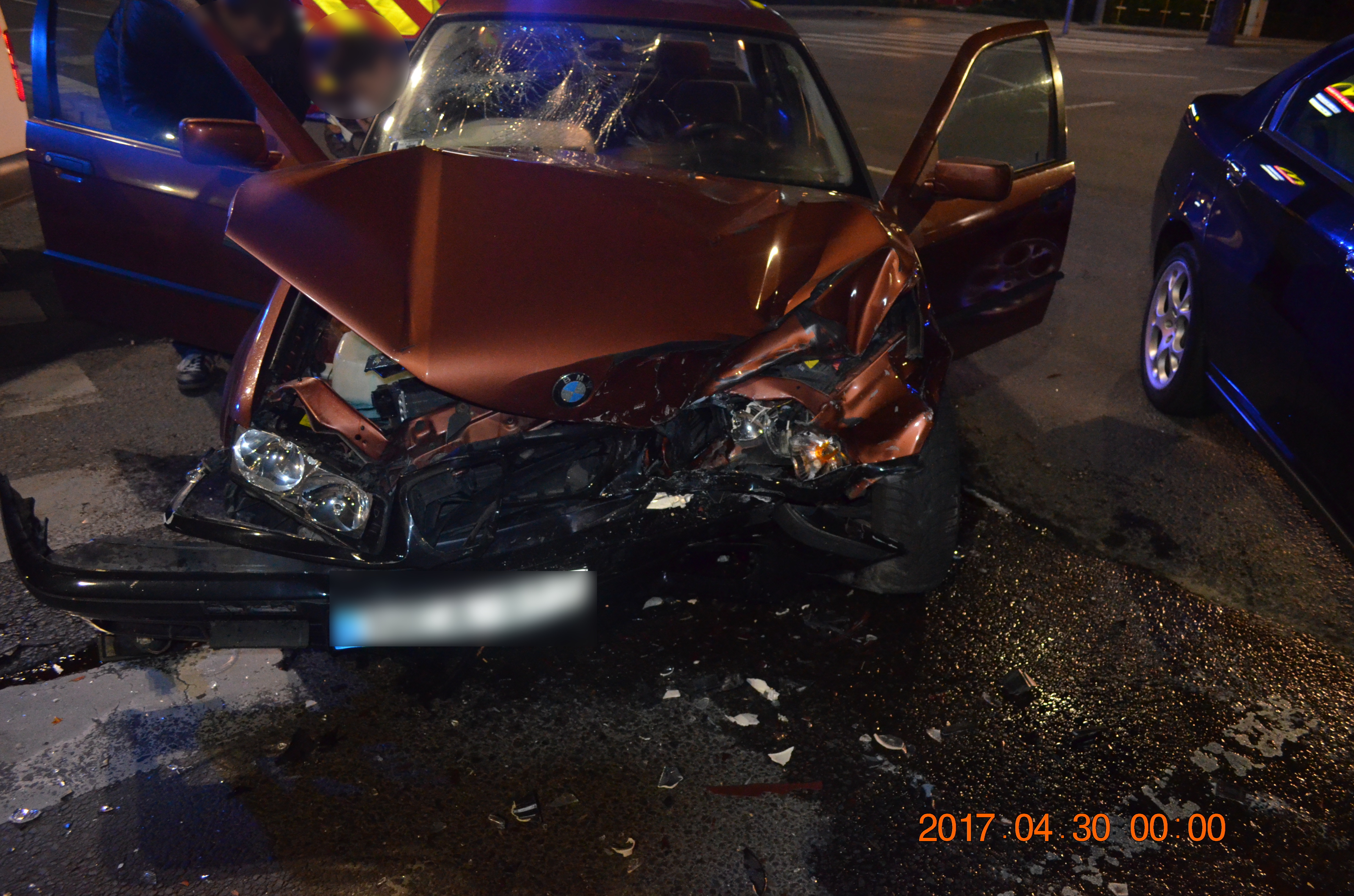 Pécsett, a Zsolnay Vilmos út és a Lánc utca kereszteződésében nem sokkal éjfél előtt két személygépkocsi ütközött össze. Az egyik autós kanyarodás közben vélhetően nem adta meg az elsőbbséget a másik járműnek, ezért az egyenesen haladó autó utasa súlyos sérüléseket szenvedett. A balesetben megsérült 19 éves pécsi férfit a mentők nyolc napon túl gyógyuló sérülésekkel szállították kórházba.