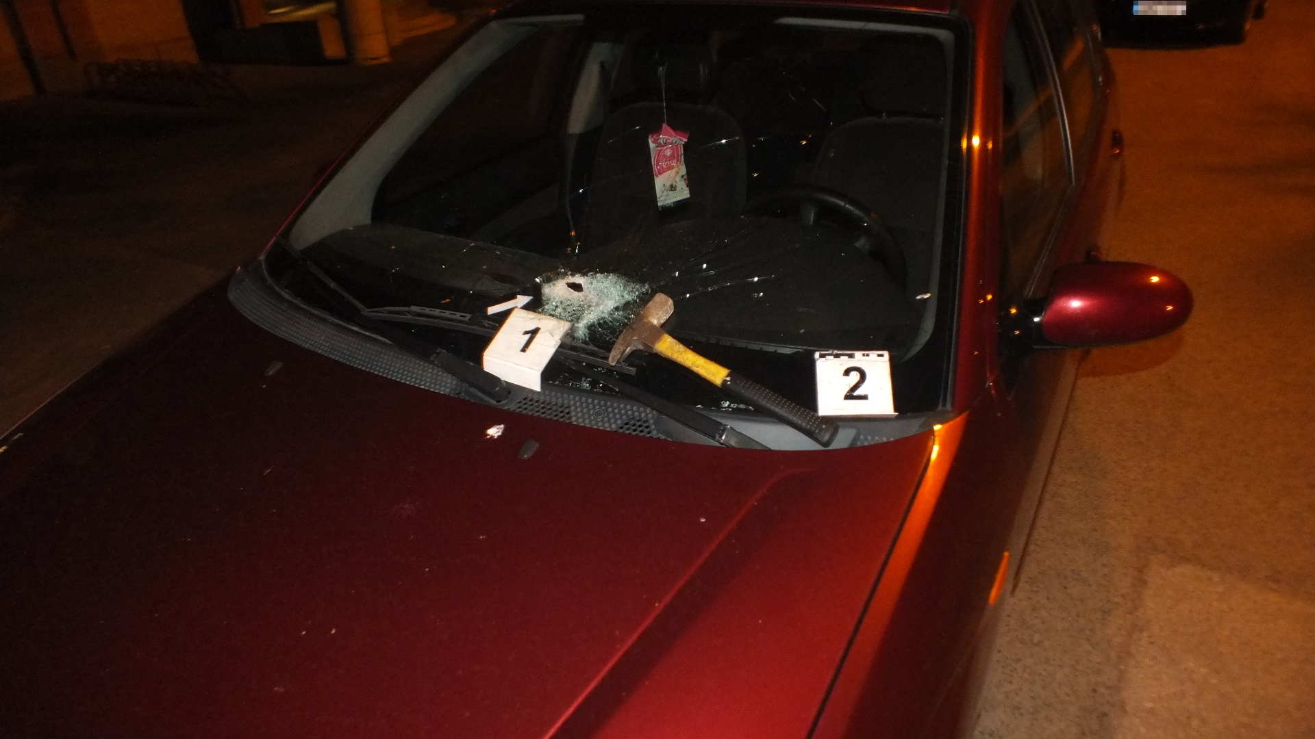 A 44 éves férfit azzal gyanúsítják a rendőrök, hogy 2016. július 1-jén délután Bicskén egy kalapáccsal bedobta egy előtte elhaladó Ford típusú gépkocsi szélvédőjét. Az elkövető ezután a lakóházából egy baltát is kihozott, de azt az egyik ismerősének sikerült elvennie tőle. A férfi továbbra is agresszíven viselkedett és végül az öklével egy parkoló gépkocsi hátsó szélvédőjét is betörte.