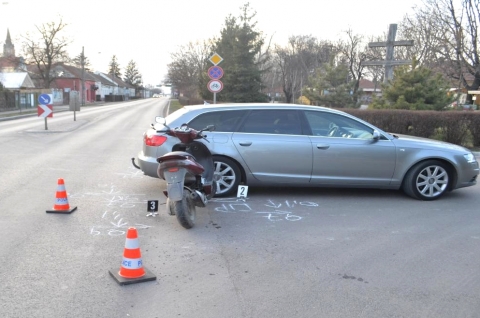 Tótkomlóson, a Széchenyi utca és a Gajdács utca kereszteződésében 9 óra 40 perckor szintén személygépkocsi és motoros ütközött össze. A motorkerékpárral közlekedő férfi megsérült, sérülései 8 napon belül gyógyulóak.