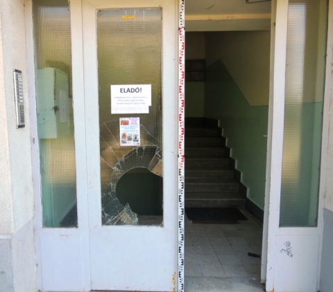 Békéscsabai lépcsőházajtók üvegeit törte be