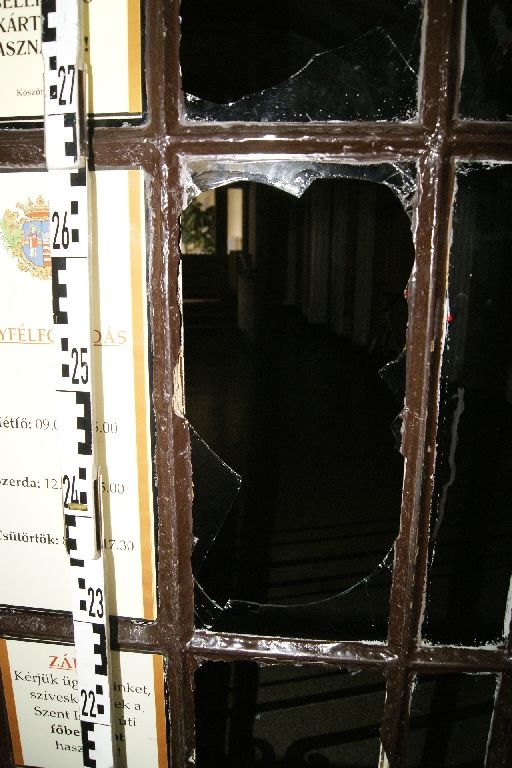 A rendőrség ügyeletére 2014. október 26-án 6 óra 5 perckor érkezett bejelentés, hogy Győrben, a Városháza épület hátsó bejárati ajtaján az üvegablakokat betörték. Az egyenruhások a környékét átvizsgálták és a rongálással gyanúsítható nőt elfogták. Az intézkedők megállapították, hogy a 35 éves, Ausztriában élő ukrán nőt az osztrák hatóságok eltűnés miatt körözik. Az ablaküveg betörését beismerte, tettére magyarázatot adni nem tudott. A rendőröknek azt mondta, Kievbe akart utazni az édesanyjához, de Ausztriába nem akar visszamenni. A zavart viselkedésű nő a kezén vágott sérüléseket szenvedett, a mentők kórházba vitték.