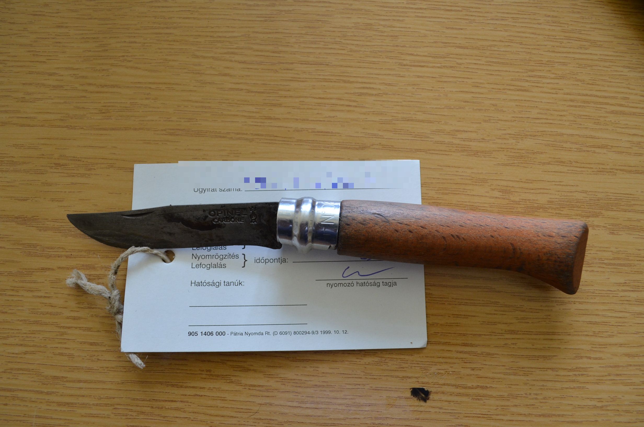 A mosonmagyaróvári rendőrök egy 8, 5 centiméter pengehosszúságú kést foglaltak le a zavart férfitől.