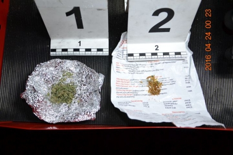 A nyomozás adatai alapján a gyanúsítottak kábítószer tartalmú anyagot szereztek és fogyasztottak. A rendőrök a két fiatalt 2016. április 23-án 22 óra 5 perckor Tatabányán, a Mártírok úton ellenőrizték. A gépkocsit vezető idősebb férfi a járőrök kérdéseire összefüggéstelenül felelt és az utastérben terjengő „marihuána” illatára értelmes választ adni nem tudott. A rendőrök a járművet átvizsgálták és a bal első ülés alól, alufóliába csomagolt bruttó 12,4 gramm, valamint egy reklámpapírba csomagolt bruttó 13,8 gramm kábítószergyanús növényi származékot foglaltak le.