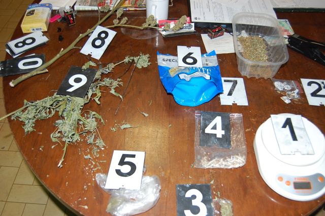 A járőrök 2015. március 7-én az esti órákban igazoltatták a helyi férfit Csornán. A gyanúsított a rendőrök kérdéseire elismerte, hogy többféle drogot is fogyasztott és otthonában is tart kábítószert. A lakásában tartott házkutatáskor zöld növényi törmeléket és alufóliába csomagolt fehér port foglaltak le a nyomozók.