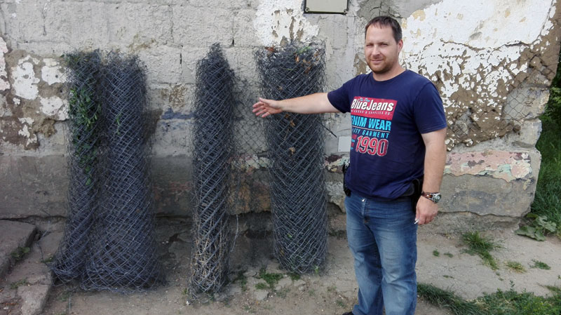 A képen, Takács József rendőr törzszászlós, nyomozó a lefoglalt drótkerítéssel