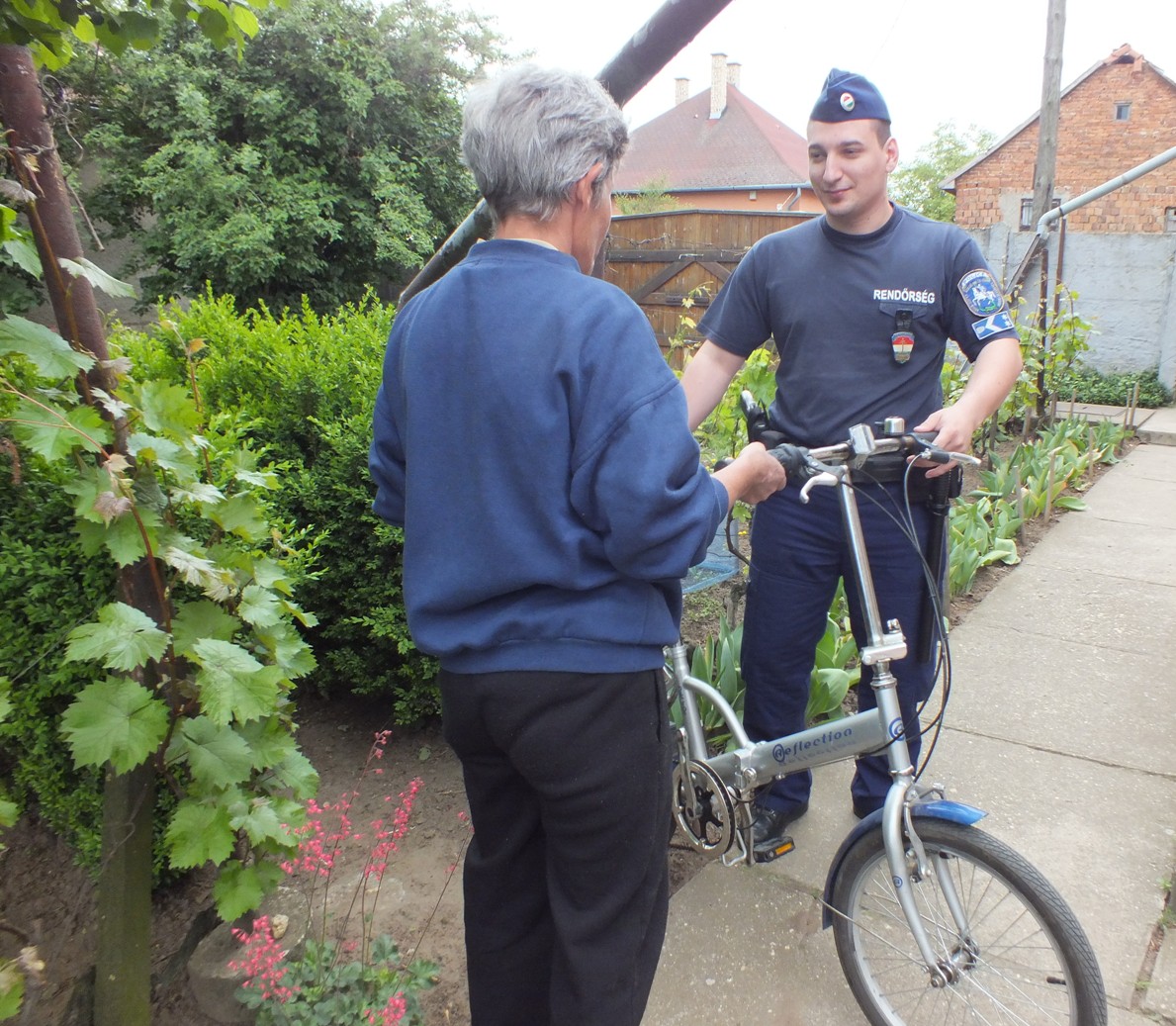 A járőrök a városban adatgyűjtést végeztek, majd kapott leírás alapján a Hunyadi utcában meglátták egy helyi férfinél a keresett biciklit, amit lefoglaltak. A helyi lakos a rendőröknek elmondta, hogy a kerékpárt délután vásárolta egy férfitól, aki azt mondta neki, hogy az már régen az ő tulajdona, de most el akarja adni.