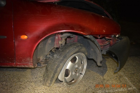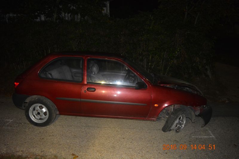 A gépkocsivezető a lejtős útszakaszon figyelmetlensége miatt elvesztette uralmát járműve felett és egy betonoszlopnak ütközött, majd ráhajtott az úttest szélén lerakott mederlapokra, aminek következtében jobb oldali első gumiabroncsa légvesztetté vált. Az autó futóműve kiszakadt és pár méteren belül megállt. A balesetben személyi sérülés nem történt.