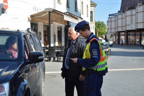 Rendőrök és közterület felügyelők közösen ellenőrzik a gépjárműveket.