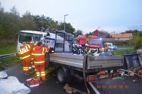 Egy tiszaalpári férfi közlekedett tehergépkocsival az 52-es számú főúton a Duna híd felől a 6-os számú főút irányába 2016. október 3-án, amikor egy jobbra ívelő útkanyarulatban feltehetőleg sebességének nem megfelelő megválasztása miatt járművével a vizes úttesten megcsúszott, és a menetirány szerinti bal oldali sávba sodródott, ahol nekiütközött egy szemből szabályosan közlekedő tehergépkocsinak. A baleset következtében a tiszaalpári férfi és utasa súlyos sérüléseket szenvedett, a mentőszolgálat munkatársai kórházba vitték őket.