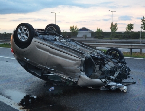 Az M35-ös autópályán közlekedett egy személygépkocsi 2017. május 13-án 19 óra 30 perc körül Budapest felől Debrecen irányába. A sofőr – feltételezhetően figyelmetlenségből – későn vette észre az előtte haladó gépjárművet és az ütközés elkerülése érdekében a kormányt elrántotta. A manőver következtében a gépkocsi a nedves úton megcsúszott, nekiütközött a szalagkorlátnak, végül a tetejére borult. A járművet vezető nő a baleset következtében könnyű sérülést szenvedett. A rendőrség vizsgálja a baleset körülményeit.