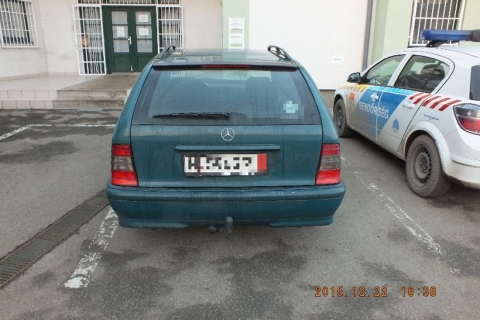 A Pásztói Rendőrkapitányság járőrei 2015. december 22-én 15 órakor Pásztó belterületén ellenőriztek egy külföldi, ideiglenes rendszámmal ellátott Mercedes típusú személygépkocsit és annak vezetőjét. Az adatok egyeztetése alkalmával kiderült, hogy a gépjárművön nem a hatóság által arra kiadott forgalmi rendszám van elhelyezve. A rendőrök a beszerzett adatok alapján megállapították, hogy a hatósági jelzést a sofőr fia helyezte el a gépkocsin. A nyomozók S. Ferenc 25 éves bátonyterenyei lakost a rendőrkapitányságra előállították, és egyedi azonosító jel meghamisítás bűntett elkövetésének megalapozott gyanúja miatt gyanúsítottként hallgatták ki. A férfi a bűncselekmény elkövetését elismerte.