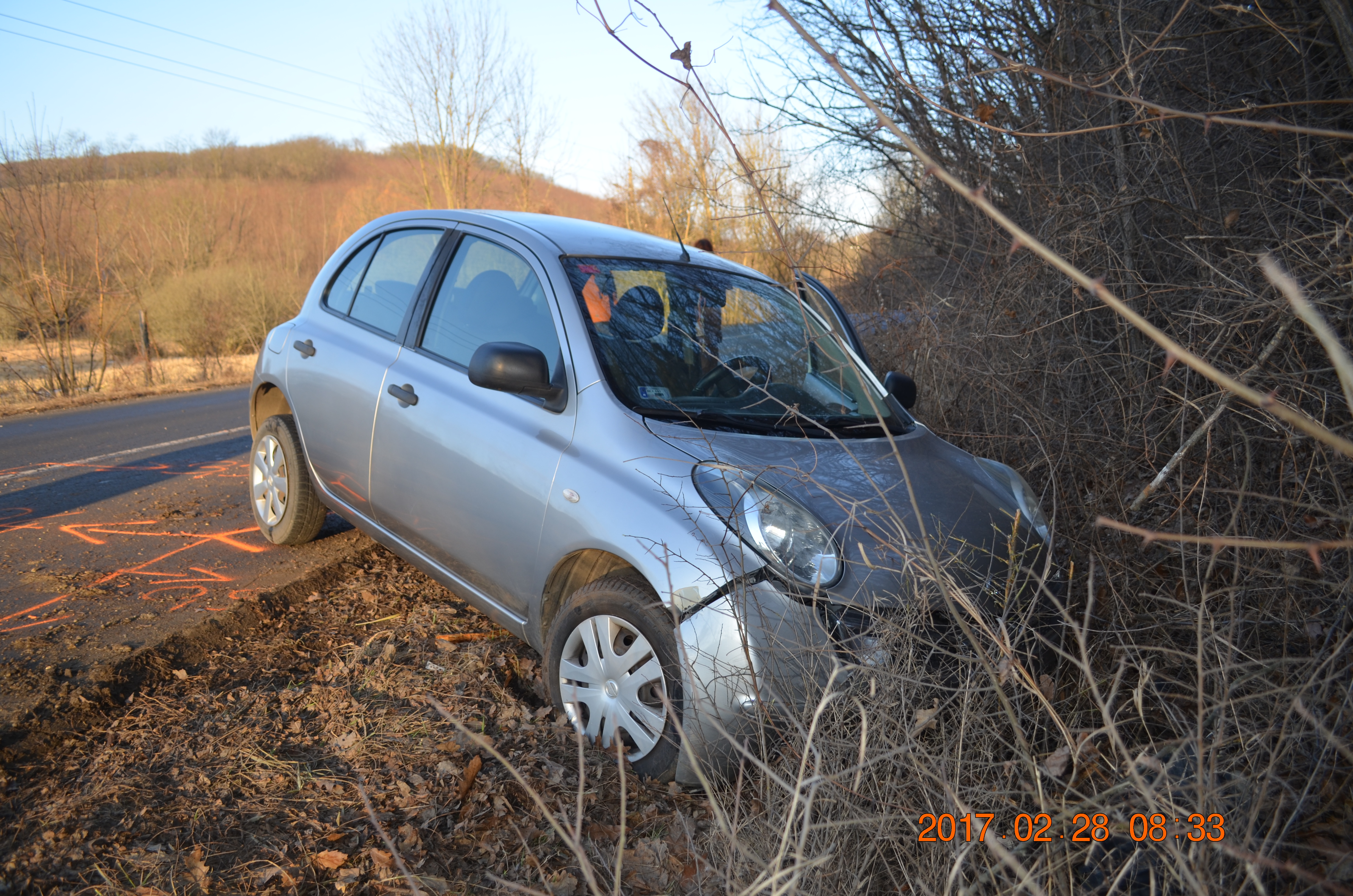 Csörög külterületén 2017. február 28-án 7 óra 30 perckor egy férfi az M2-es autóútról hajtott le a 2104-es számú útra, amikor nem adott elsőbbséget a szabályosan közlekedő autósnak, aki az ütközés elkerülése miatt elrántotta a kormányt és az árokba hajtott. A jármű vezetője könnyű sérülést szenvedett.