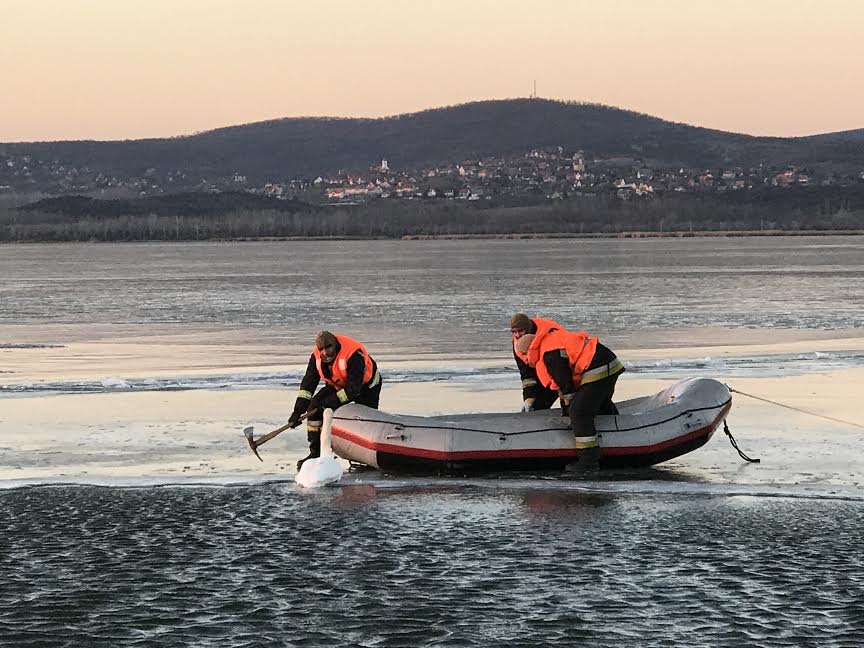 A Velencei-tóba fagyott madarat mentettek ki a gárdonyi rendőrök és a székesfehérvári tűzoltók.