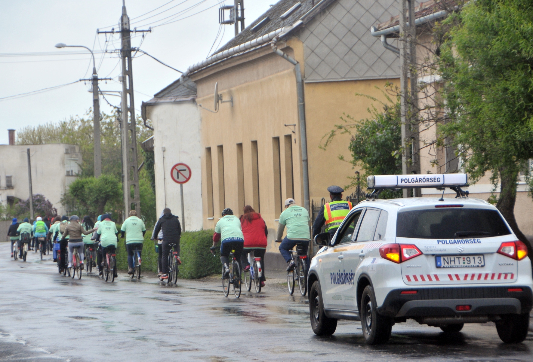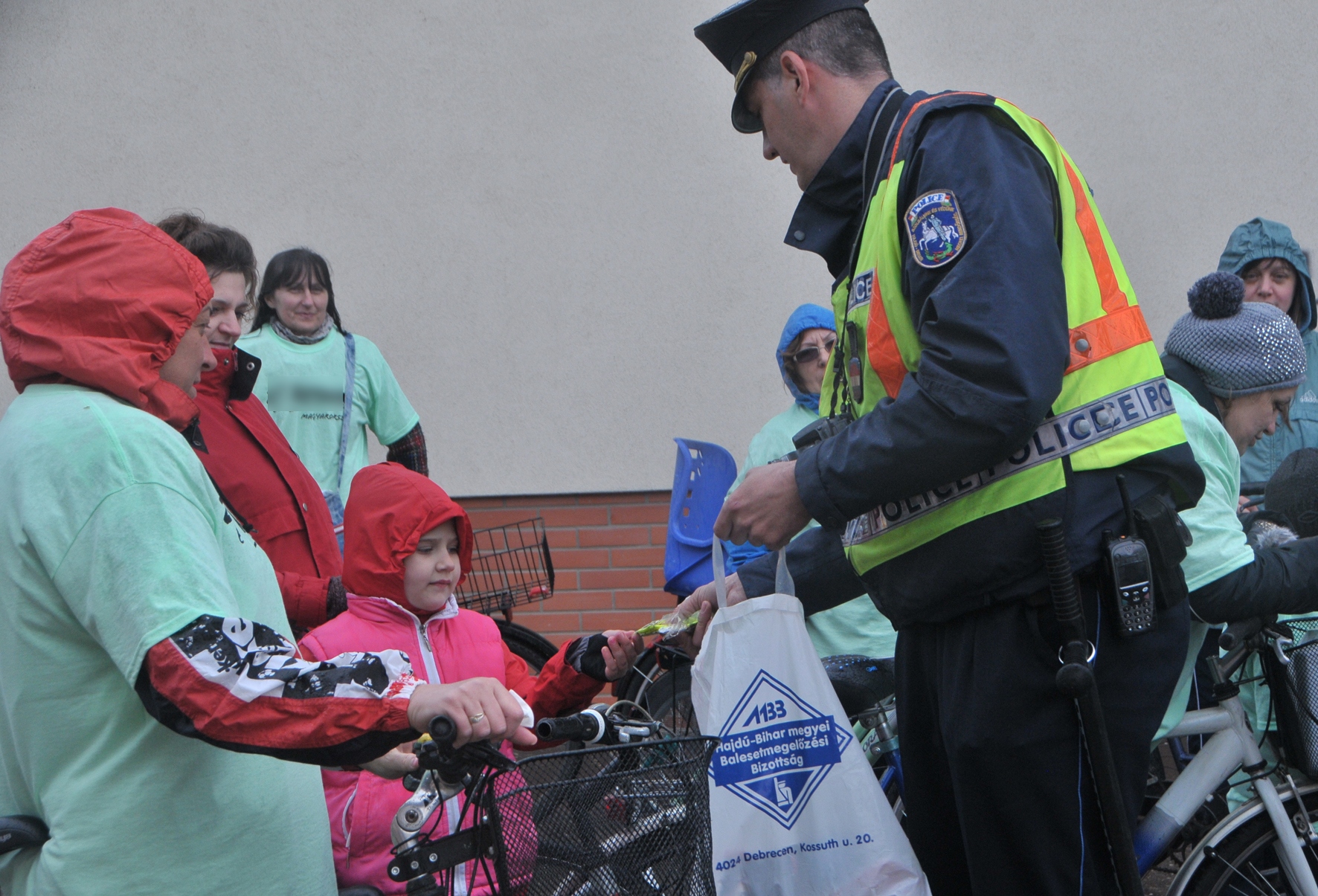 A hajdúdorogi rendőrök és polgárőrök a rendezvényen a biztonságos kerékpáros közlekedésre hívták fel a figyelmet.