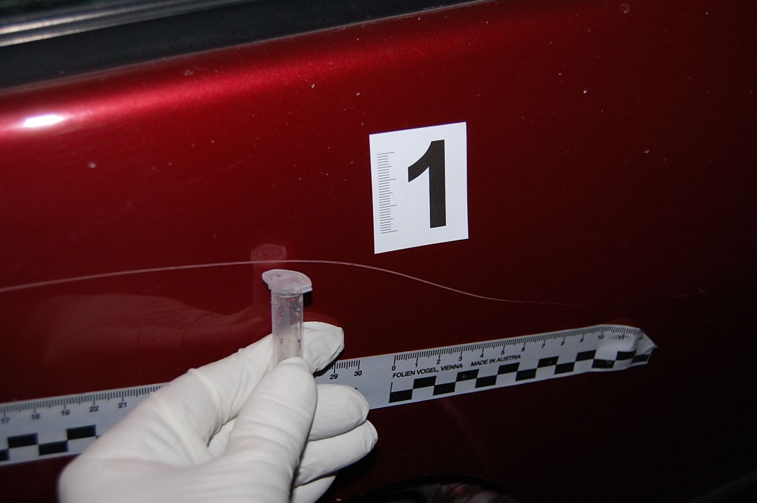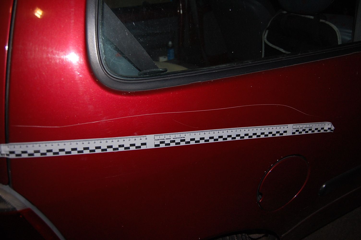A nyomozás adatai alapján a gyanúsított a jármű mellett haladt el, mikor egy a kezében lévő hegyes tárggyal 70 centiméter hosszan megrongálta bal hátsó sárvédőjét.