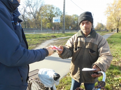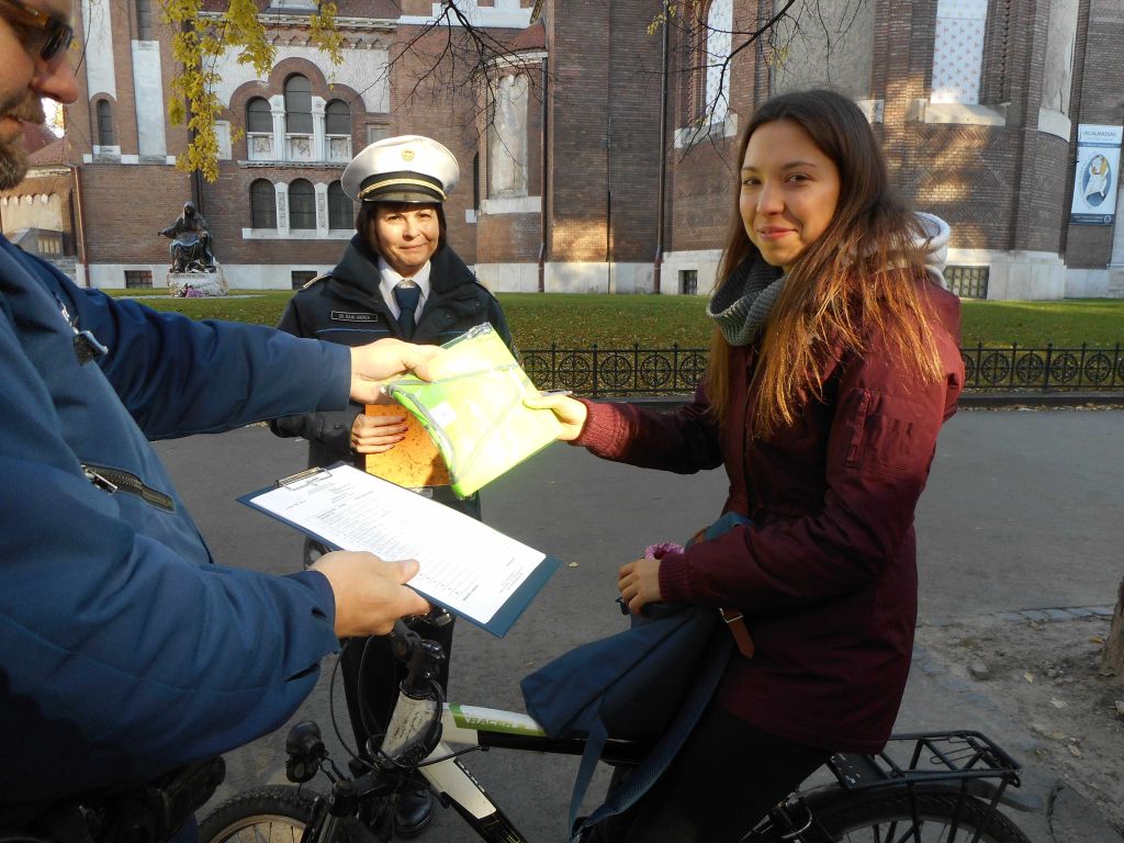 Minden kétkerekű tulajdonosa szórólapokat is átvehetett, melyen a kötelező felszerelések mellett, a legfontosabb kerékpáros KRESZ szabályokról kaptak tájékoztatást.