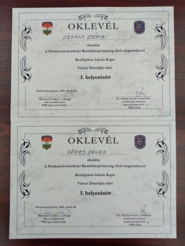 A Hódmezővásárhelyi Rendőrkapitányság Városi Baleset-megelőzési bizottsága 2018. április 06-án rendezte meg a Kerékpáros Iskola Kupa városi döntőjét a rendőrkapitányság épületében.